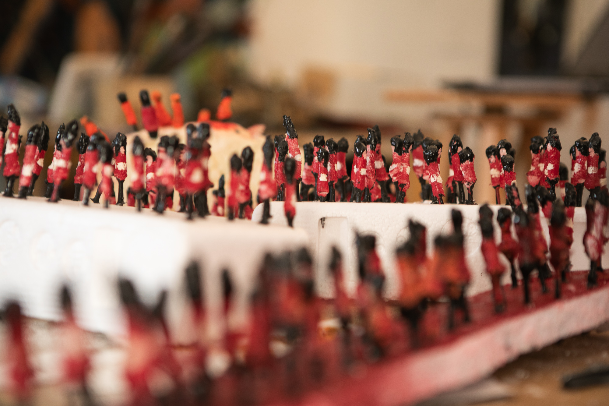 Markus dived into an artistic realm represented in this old photo and got caught in it. His indeveres resulted in a multi-layer project: the “Parade” - A spatial installation, concoct through two years of artistic research and creation involving various media: photography, painting, monotype, relief and sculpture. While relating to digitextual theories, Markus explores the tension between the individual iconic image and its replicas, the tension between the formalistic minimalism of a single soldier’s image and that of the density and multitude of a full-scale army.
